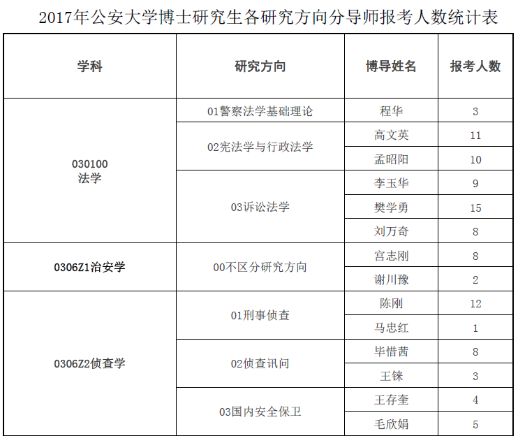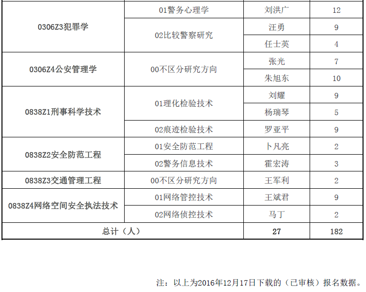 2017年公安大学博士研究生网上报名情况(更新至12月17日)